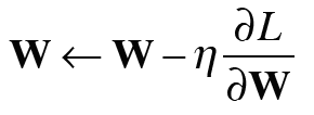 W가 갱신하는 가중치 매개변수이고, eta는 학습률을 나타내며, 실제로는 0.01이나 0.001같은 값을 미리 정해 사용한다.