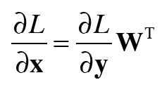 $$\frac{\partial{y_j}}{\partial{x_i}}=W_{ij}$$가 성립하므로 이를 대입하면 아래 식을 유도할 수 있다.