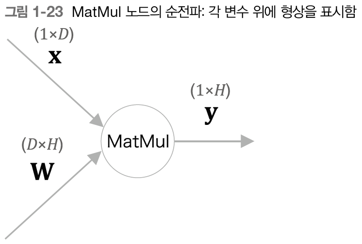 곱셈의 역전파와 마찬가지로 행렬의 영전파에서도 순전파 시의 입력을 서로 바꾼 행렬을 사용한다. 그 다음 각 행렬의 형상에 주목하여 정합성이 유지되도록 행렬 곱을 조합하면 행렬 곱의 역전파를 유도할 수 있다.